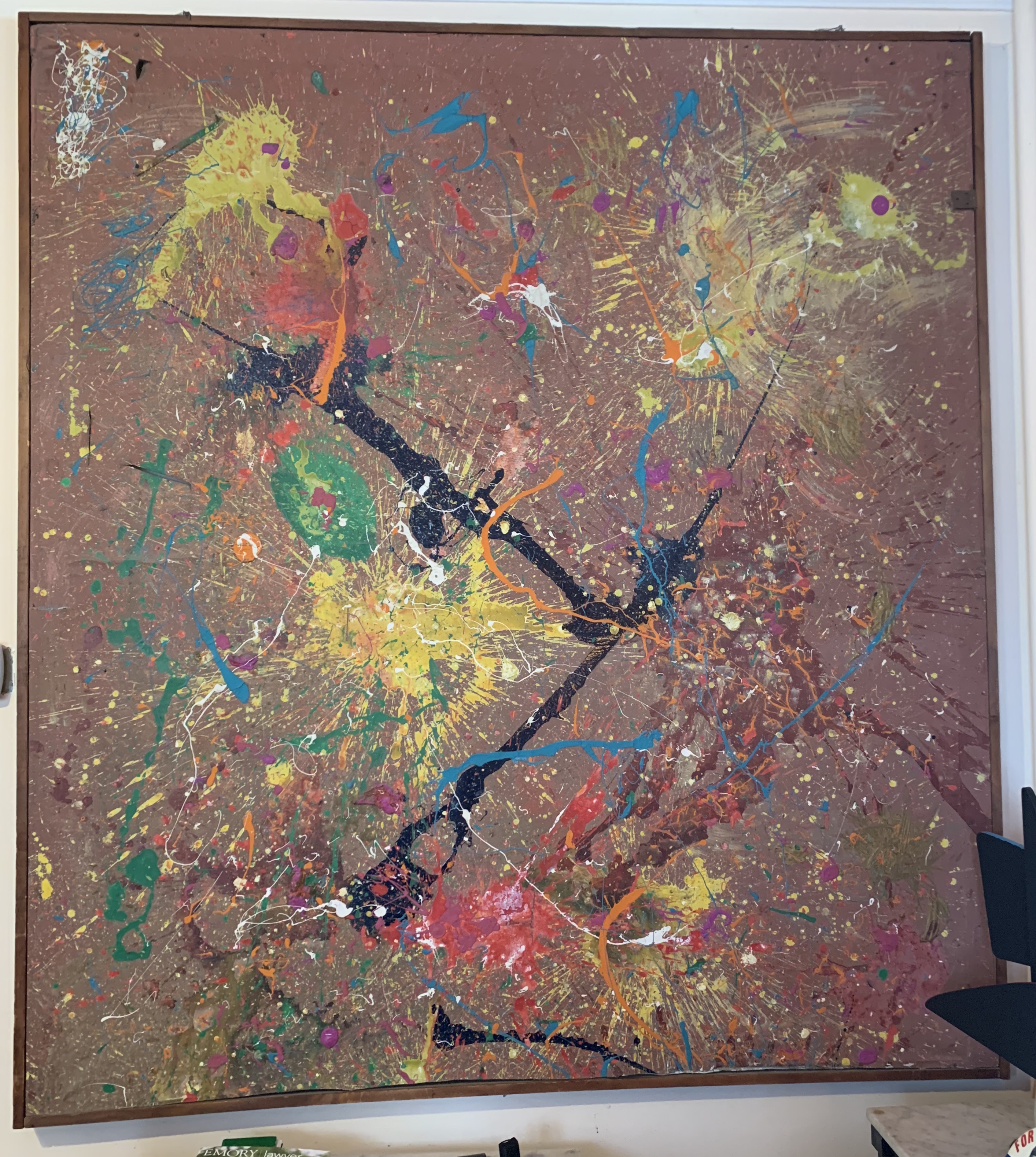 These epic paintings were done when I was in high school (actually just after my senior year). My friend, Ford Dixon (where is he now?), and I were building a set for a production fo “No Place to be Somebody”. We were painting a six foot by twelve foot flat, trying to get the effect where it disappears at the top and got carried away. I brought it home (which wasn’t easy) and it was too huge to do anything with, so my father cut it in half. One half of it ended up in Everett’s office for decades and the other half was in our house in Westport until they moved and I got it. I have them both now.