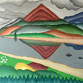 “Hilma Meets Mary”: A 2019 painting inspired by an amazing Guggenheim retrospective of the work of Hilma Af Klint. I decided it needed something both to finish it off and to make it more Hilma-like, so I added the quotations from Mary Oliver.