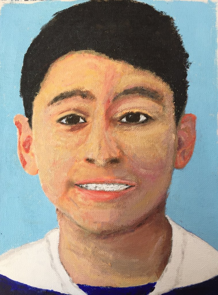 This was part of a project my Art & Soul Covenant group did. We got photos of poor Peruvian kids and had to come up with a painting or some other artwork that would then be given to the kid with a note from the artist.