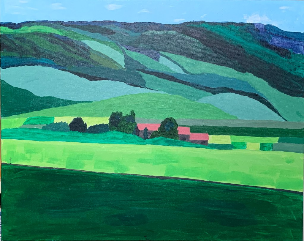 London Painting Series: Isle of Skye scene painted after going to a Georgia O’Keefe retrospective at Tate Modern. I think that O’Keefe effect would be easier to do with oil, but this is acrylic.